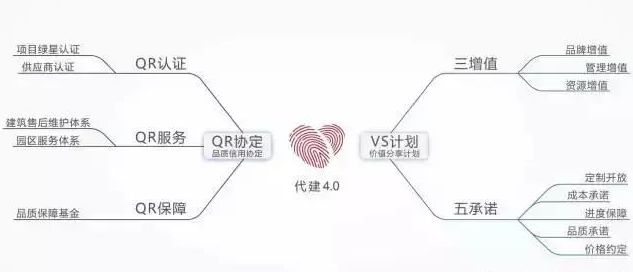 现在,就玩得更复杂了。以绿城的代建4.0为例,既包括事前的基金安排与销售约定机制(有点售价对赌的意思),也包括事中的各种管控,更涵盖了楼盘交付之后的各种服务。用他们自己发明的专业术语来说,叫做「QR协定」(品质信用协定)与「VS计划」(价值分享计划)。