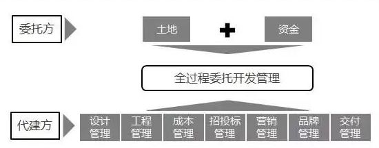 与土地确权的房地产项目对接,由委托方提供土地并承担全部或主要的投资,代建方根据项目方需要向项目输出品牌,派驻专业的开发团队,承担开发任务,提升产品的市场价值,并为符合要求的部分项目提供融资服务。此类项目简单来说,就是品牌开发商不知名的小开发商提供全程的开发管理服务,输出品牌,提升产品的市场价值。
