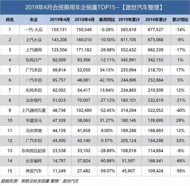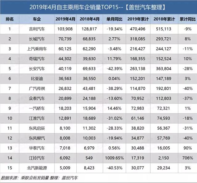 因此,说是自主品牌几乎全军覆灭,有点刻意,只能说自主品牌跌幅更大——中汽协数据显示,2019年4月,中国品牌乘用车共销售58.5万辆,同比下降27.9%,占乘用车销售总量的37.1%,比上年同期下降5.2个百分点。