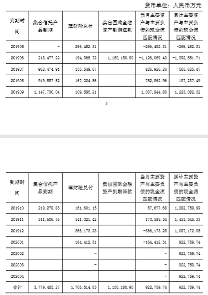 “公司在2019年5-7月存在资产负债累计现金流缺口,天安财险计划通过出售投资性房地产、提前结束信托产品、处置其他无固定期限资产等方式补充资金,满足理财险兑付及对外融资偿还的资金需求。”
