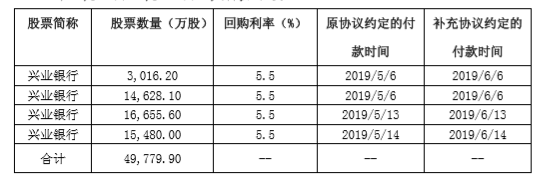 5月18日,公告显示,天安财险与华夏人寿签署了补充协议,华夏人寿同意在回购利率保持不变的情况下,天安财险将原协议项下的转让日延迟到2019年6月份,较原约定日期整整推延一月。